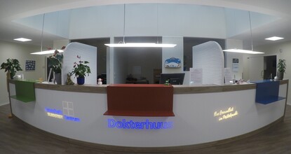 Unsere großzügigen Räume befinden sich im 2018 neugebauten Dokterhuus. Neben unserem kommunalen MVZ befindet sich ebenfalls eine Apotheke und eine physiotherapeutische Praxis im Dokterhuus.
