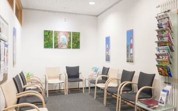 Die Praxis ist mit öffentlichen Verkehrsmitteln gut zu erreichen, sie liegt direkt an einer Bushaltestelle und nur wenige hundert Meter vom Bahnhof entfernt. Im Untergeschoss des Gebäudes befindet sich eine Tiefgarage mit 56 Parkplätzen. Von dort ist die Praxis im ersten Stockwerk direkt mit dem Aufzug zu erreichen. Das Gebäude ist behindertengerecht barrierefrei ausgestattet