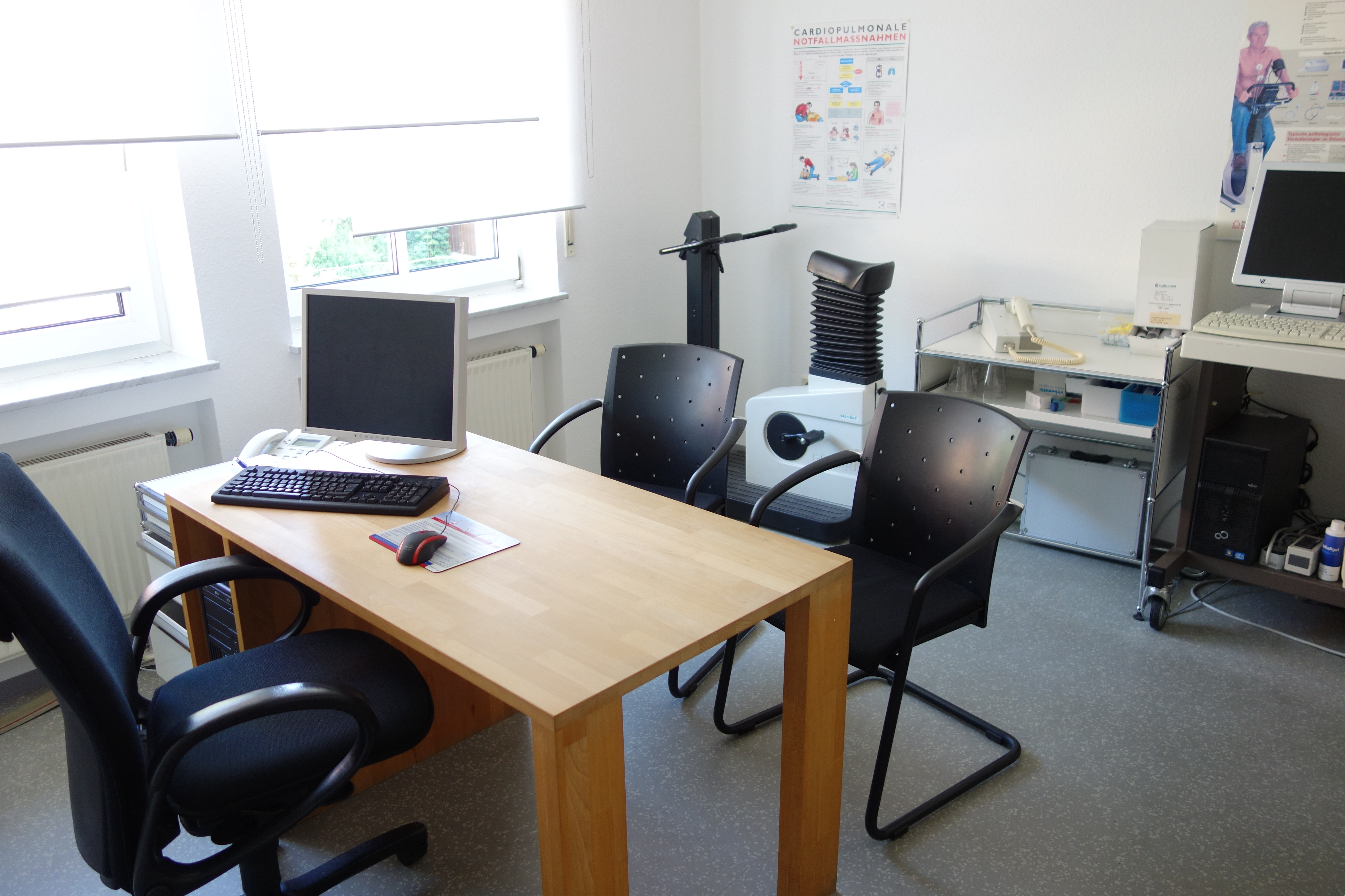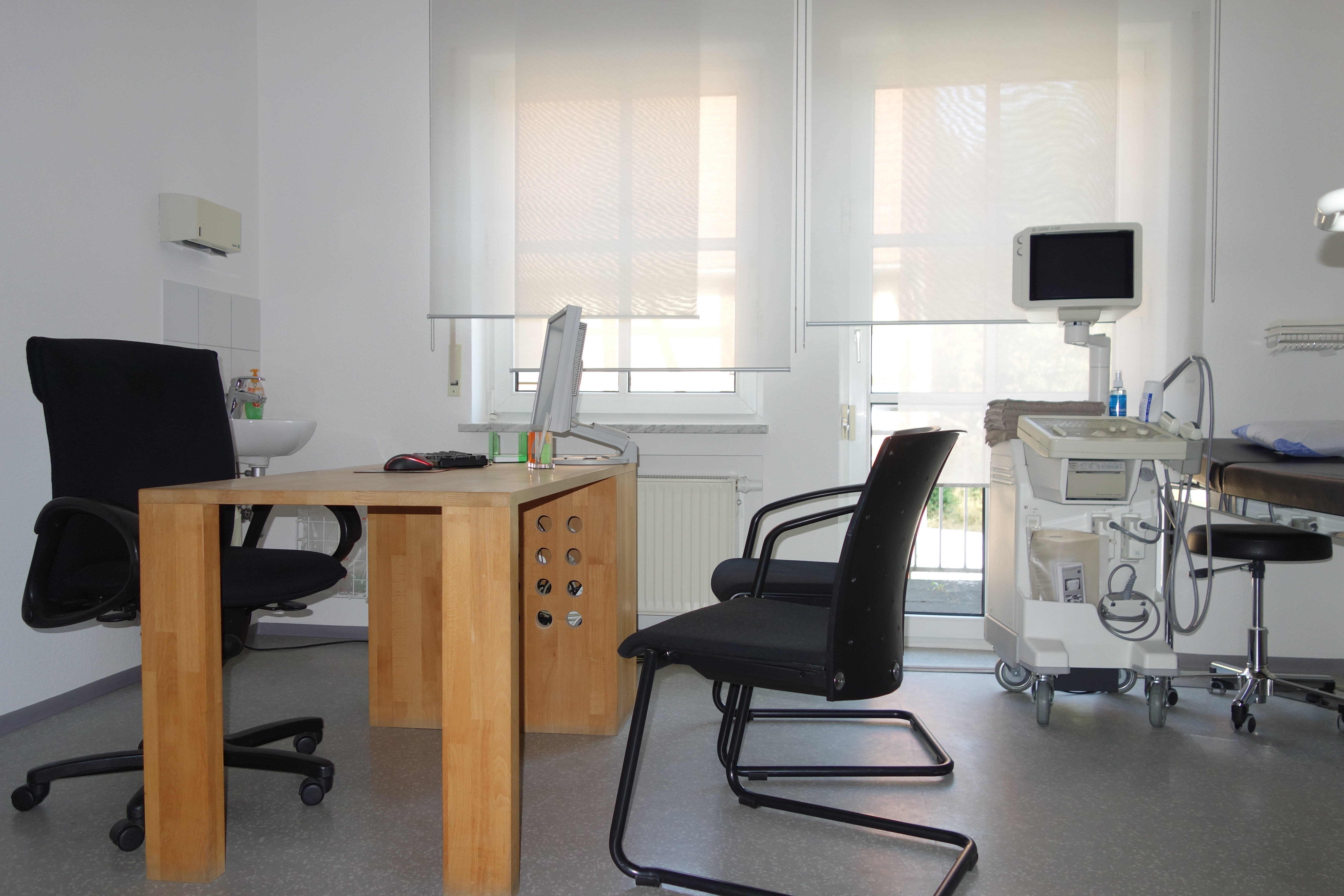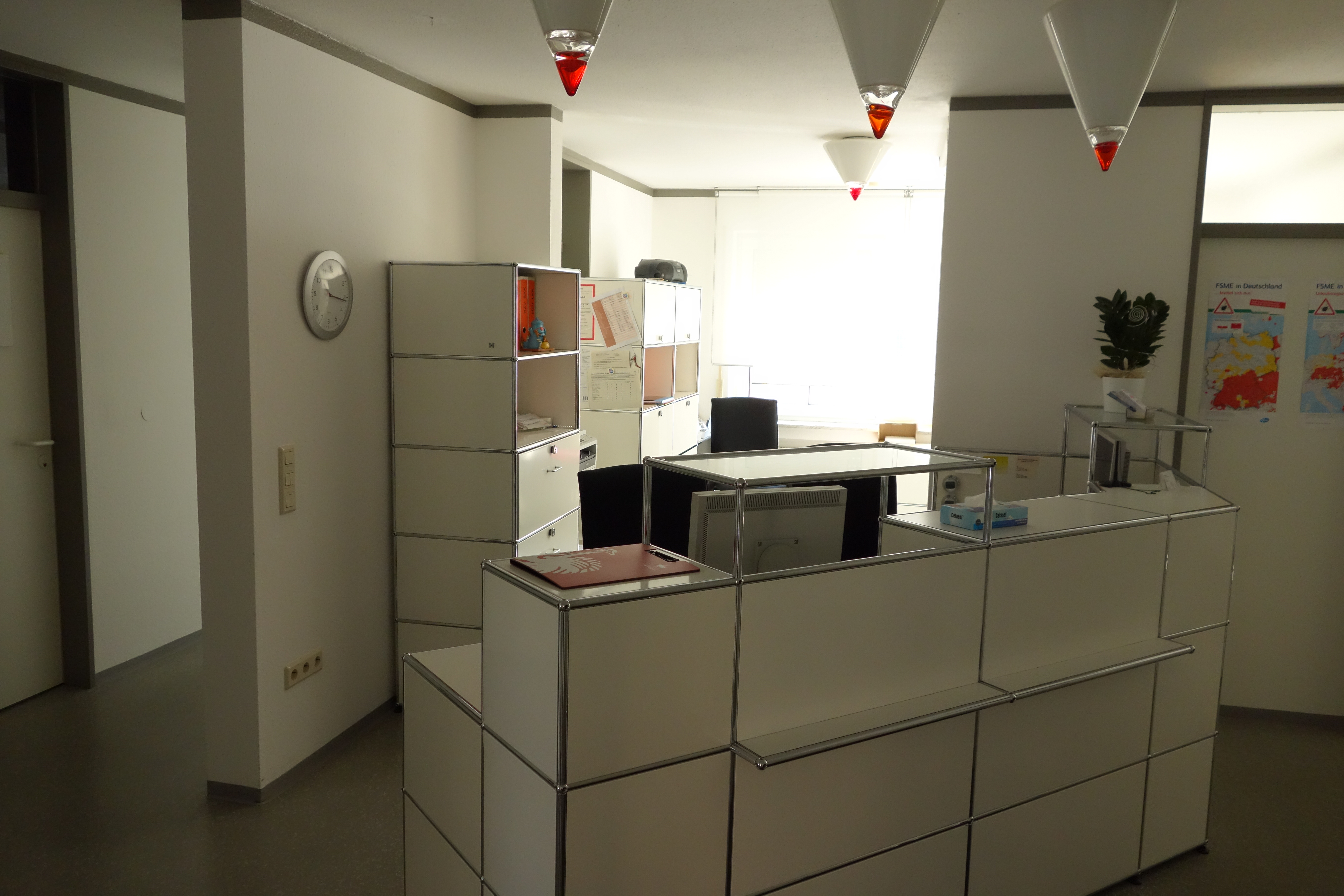 Die Praxis ist für die Praxisübernahme modern ausgestattet mit USM-Haller Möbeln und technisch auf dem neuesten Stand, mit 7 PC - Arbeitsplätzen in drei Sprechzimmern und vier Behandlungsräumen. Der Mietvertrag ist bei Praxiskauf jährlich kündbar.