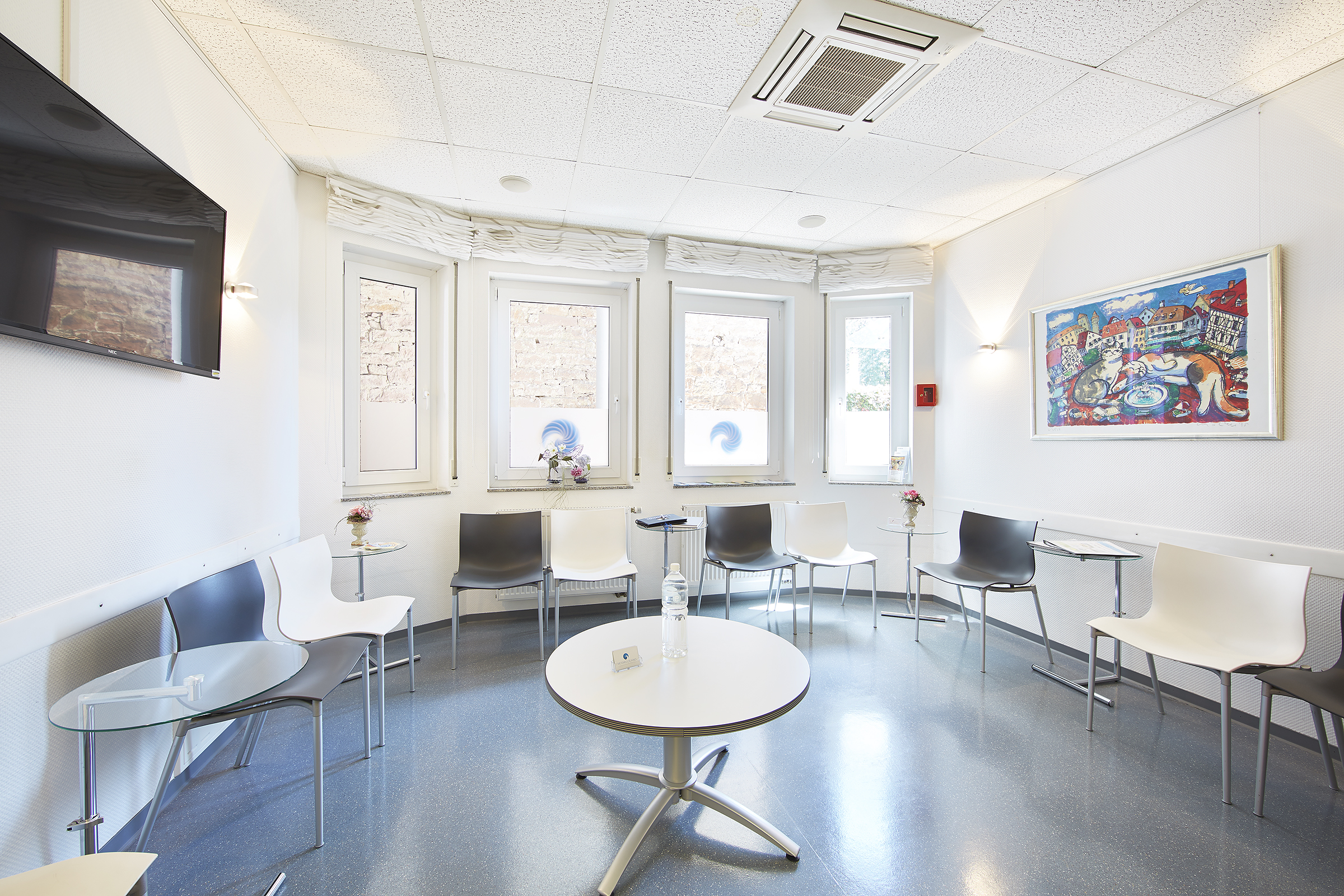 Praxisräume liegen in einem Geschäftshaus in der Innenstadt.